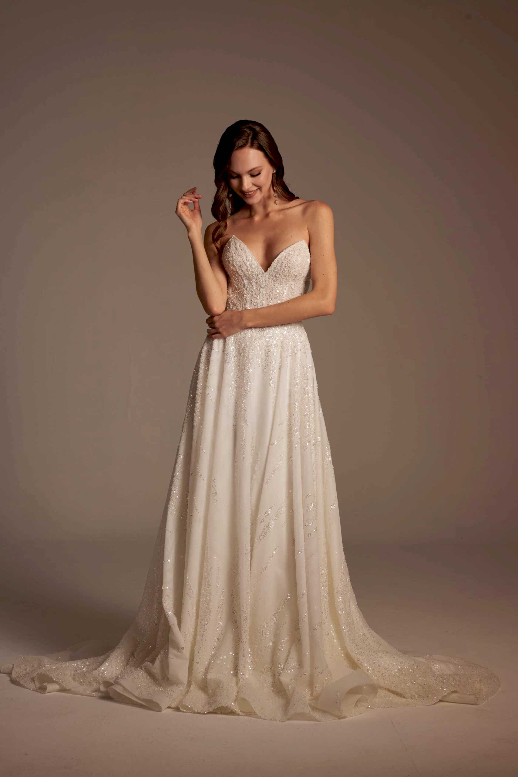 Işıltıyı seven ancak abartıdan uzak durmak isteyen gelinler için tasarlanan Beyza Model; özellikle İstanbul gelinlik arayışında olan, Kadıköy gelinlik butiklerinde modern ve zarif tasarımlar denemek isteyen gelinler için güçlü bir seçenektir.